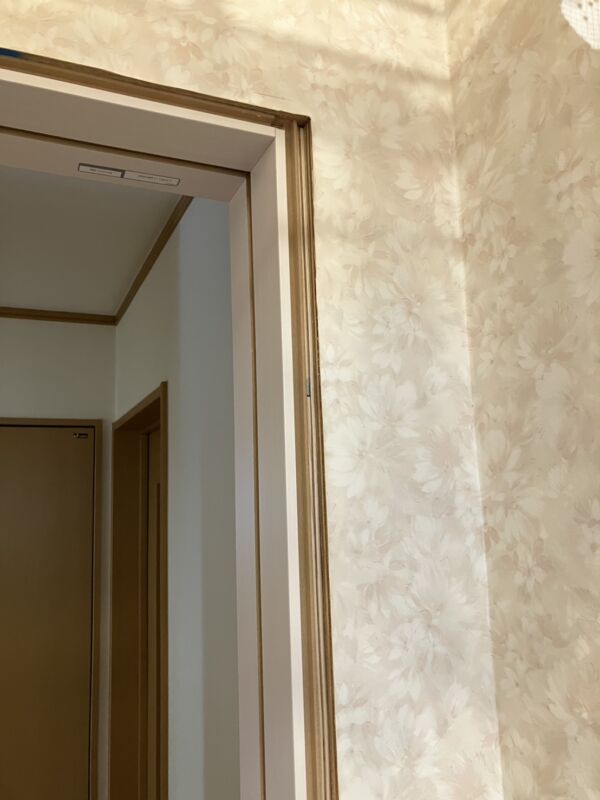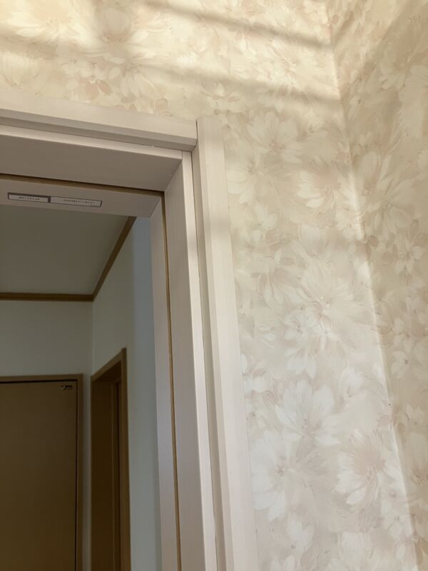 建具枠を撤去する際に隣接する壁紙や下地のボードに破損が生じる可能性があるので、現状の枠よりも少し開口幅の狭い枠材を採用して、ケーシングと呼ばれる化粧額縁を設置することで万が一壁紙やボード材などに破損が生じても見えなくなります❤